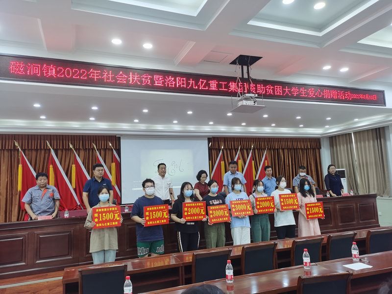 愛是與生俱來的,在血液里流動,在骨子里結(jié)晶,它源源不斷的由心而生,永不枯竭,只要人人都愿意奉獻(xiàn)一點(diǎn)愛,就如甘霖沐浴大地,人間處處盛開幸福之花! 為響應(yīng)洛陽市政府精準(zhǔn)扶貧政策,洛陽九億重工集團(tuán)有限公司及董事長王九茂積極參與捐資助學(xué)的慈善義舉活動,特做出如下決定:1、公司幫扶磁澗鎮(zhèn)2017年新招貧困大學(xué)生21名順利入學(xué),每人資助2000元,總計肆萬貳仟元整; 2、總經(jīng)理王九茂(縣政協(xié)委員)以個人名義資助磁澗鎮(zhèn)南窯村2017年新招大學(xué)生6名,總計12000元整; 我相信,在社會各界的大力支持和共同努力下,我們的“愛心助學(xué)”活動將會惠及到更多的同學(xué),為了夢想,刻苦讀書、報銷祖國,廣大同學(xué)也一定會在溫暖的社會大家庭里茁壯成長,必將成為國家建設(shè)的有用之才! 洛陽九億重工集團(tuán)有限公司 董事長:王九茂